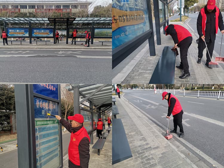 活动当天,出租汽车公司党支部组织了党员志愿者前往包干公交站台开展清洁行动。志愿者们手持扫帚、抹布、垃圾夹等工具,对公交站台的座椅、广告牌、地面等区域进行了全面清理。大家分工协作,有的擦拭站台设施,有的清扫地面垃圾,有的清理绿化带中的杂物,确保站台环境焕然一新。在清洁行动的同时,出租汽车公司还通过多种形式向市民宣传爱国卫生运动和健康出行理念,并提醒市民注意个人卫生,养成文明出行的好习惯,共同维护公共环境卫生。