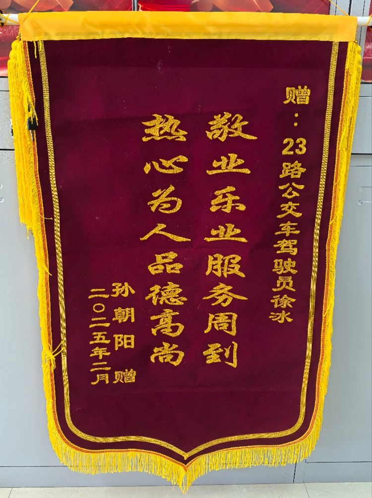一直以来,盐城公交始终秉持“乘客至上,服务第一”的理念,积极倡导全体职工践行拾金不昧、乐于助人的美德。徐冰师傅的暖心之举,不仅展现了个人的高尚品德,也是公交行业优质服务的生动写照。锦旗承载的,不仅是市民对公交驾驶员的感激之情,更是对整个公交行业文明形象的认可,彰显出这座城市的文明温度。