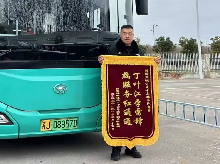 3月18日上午,市民邹爷爷将一面印有“丁叶江学雷锋,热服务红通通”内容的锦旗送到了龙冈公交回车场,向线调员赞扬了13路公交驾驶员丁叶江对乘客热情服务、对工作高度负责。