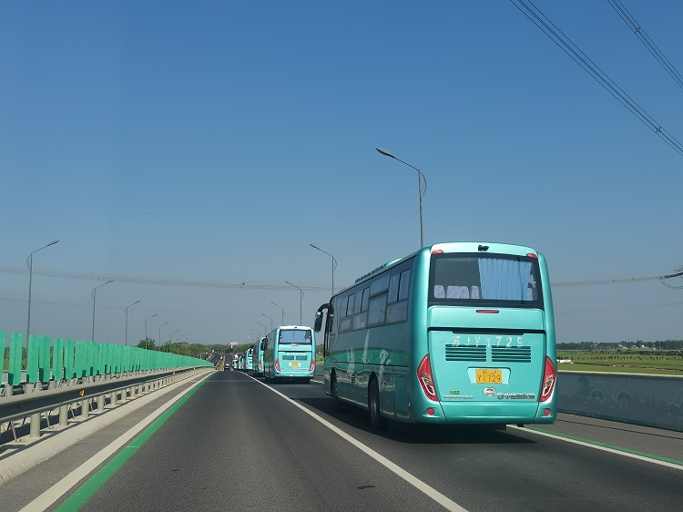活动当天,分公司管理人员全程提供保障,负责现场的调度与指挥,合理规划车辆停靠位置,维护上下车秩序,避免拥挤和碰撞的发生。发车前夕,驾驶员细心核查每位学生的安全带是否系好,并以通俗易懂的话语温馨提醒学生乘车安全须知。行车途中,驾驶员严格遵循速度限制,按既定车序平稳驾驶,为师生提供舒适的旅途体验。一路上,整个车队井然有序,宛如一条长龙,景象十分壮观。