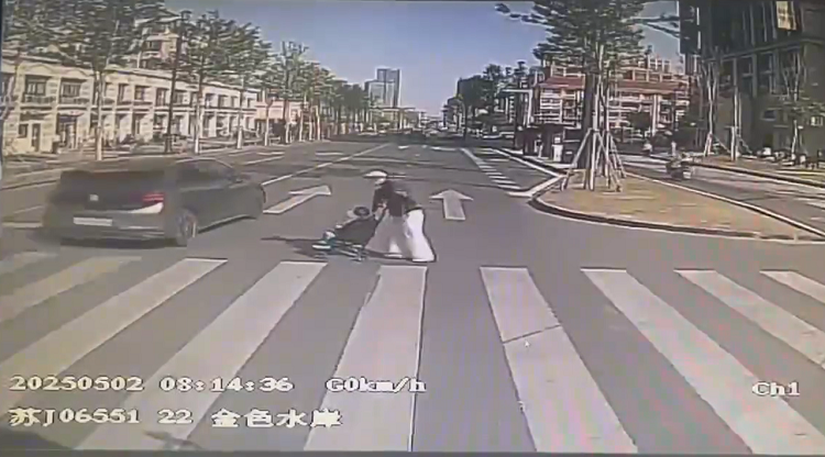 据了解,事发当时,金师傅正驾驶22路公交车行驶至金色水岸站附近,远远看到前方斑马线上裘女士正推着婴儿车等待过马路,于是便减速停车让行。正当裘女士迅速推车过马路之际,金师傅通过后视镜发现左侧后方有一辆黑色私家车正快速驶近,且未有减速迹象。在这紧要关头,金师傅迅速长按喇叭发出警报,尖锐的鸣笛声使裘女士立刻警觉并停下了脚步。几乎同时,私家车从裘女士前方不到一米处飞驰而过,情况极为惊险。