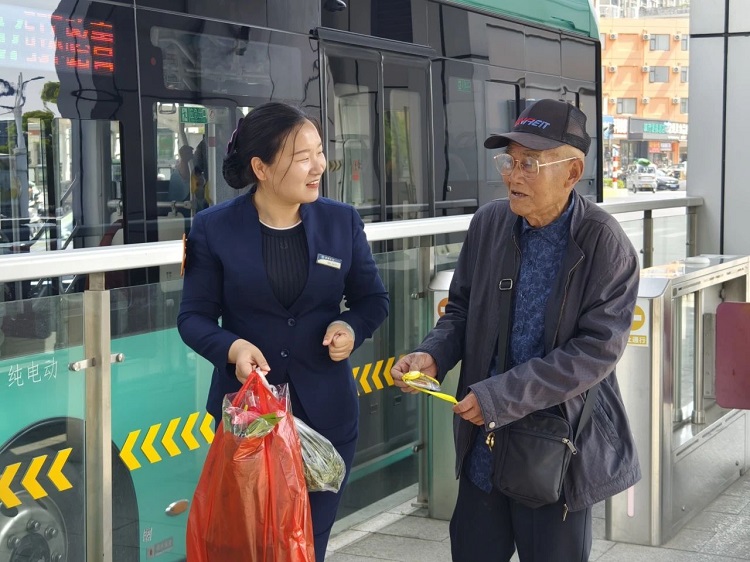 茆春燕熟稔站台的每一处细节,从设施设备的日常巡检、车辆停靠的合理安排到突发状况的应急处理,每一步都印刻着其对安全的执着。面对乘客,她热情周到,耐心解答各类问询,为初来乍到的旅客指引方向,为携带行李的乘客提供帮助,更用专业与耐心为乘客办理公交IC卡业务……她的细致让便捷出行触手可及。遇到突发状况,她也总能迅速反应、冷静应对,凭借丰富经验及时化解危机,守护好站台秩序与乘客安全。在盐阜饭店BRT站台的十年积淀,让她练就了“百问不厌”的包容,也收获了无数声真挚的“谢谢”。