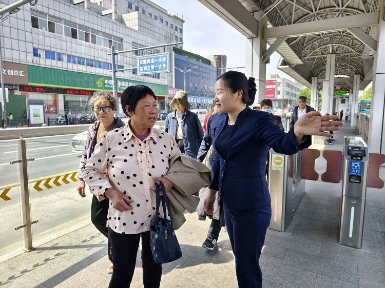 2022年调至招商场站台,茆春燕迎来了职业生涯的新考验。这里老年乘客居多,方言沟通、行动辅助的需求倍增。面对全新的环境,她以“归零”心态重新出发:记路线、主动搀扶步履蹒跚的老人……而站台上的爷爷奶奶们也回馈以朴素的温情——一句“孩子,辛苦了啊”的关怀,一份专程折返的道谢,都让她深刻体会到了工作的价值与意义。“原来被需要,就是最大的幸福。”她感慨道。