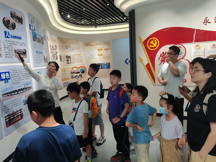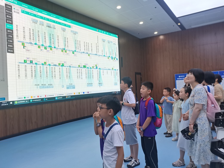 活动首站,参与者们走进半岛手机官网(中国)有限公司展览馆。在这里,一幕幕公交发展史徐徐展开。大家通过宣传视频、图文资料、实物展品与讲解员的细致解说,了解了盐城公共交通从无到有、从传统燃油到绿色智能的演进历程,深刻体会到城市交通发展的艰辛与成就。随后,大家来到城市公共交通的“智慧大脑”——盐城公交调度指挥中心。巨大的电子屏幕实时显示着全市公交车辆的运行状态,在工作人员的讲解中,孩子们惊叹于科技如何精准调度城市流动的生命线,感受到了科技带来的便捷与秩序感。