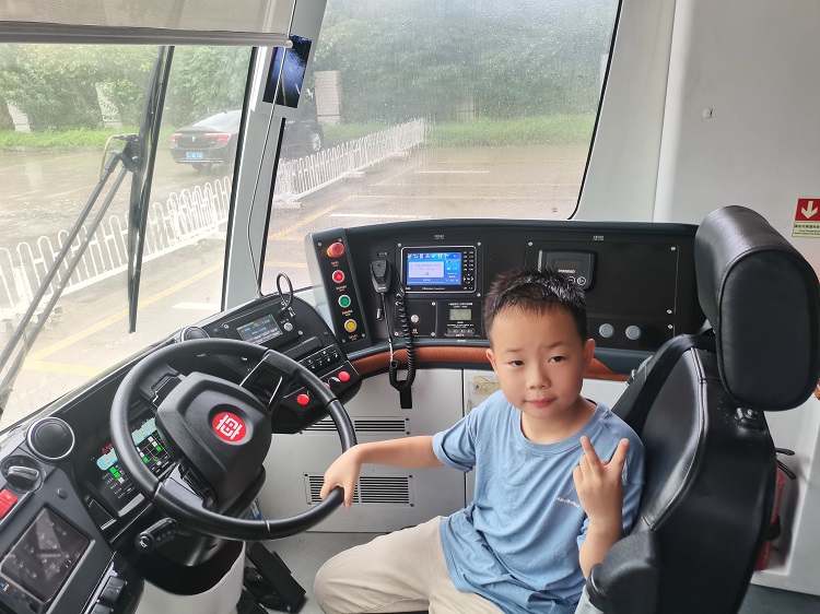 活动的另一大亮点是探访SRT(盐城快速公交系统)车场。在专业人员的带领下,大家参观了SRT的工间,工作人员现场讲解维保人员的工作模式,让孩子们直观感受到保障庞大交通系统安全运行的背后力量。最令孩子们兴奋的环节莫过于“探秘SRT车厢”,在确保安全的前提下,孩子们获准进入SRT驾驶室,孩子们得以坐上驾驶座,亲身体验驾驶员的视角,仿佛化身“小小驾驶员”,感受那份独特的驾驭乐趣。“这不仅是一次出行体验,更是城市文明的双向奔赴。”家长胡女士表示。