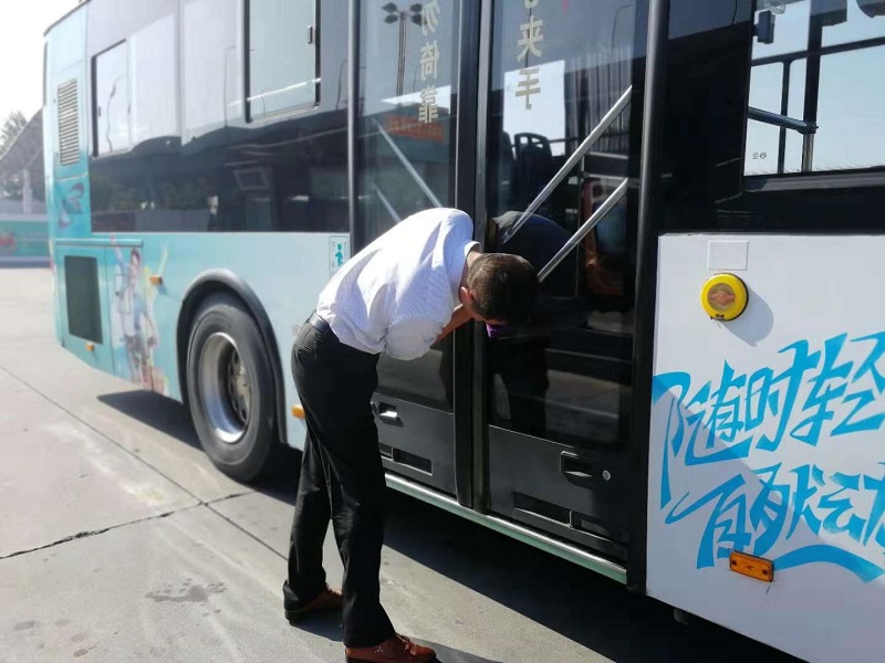 10月6日早晨5点40分左右,公交3路线驾驶员唐海军早早来到范公路公交停车场,着手准备一天的工作。“公交3路线早班车发车时间为6:00,晚班车时间为18:30,由五星客运站发往龙冈黄庄,全程26公里,每天要开5个来回。”唐海军说,由于家里距离停车场较远,而且还要把车从停车场开到五星客运站发车,他每天早上5点就要出门,晚上回到家已是8点多。